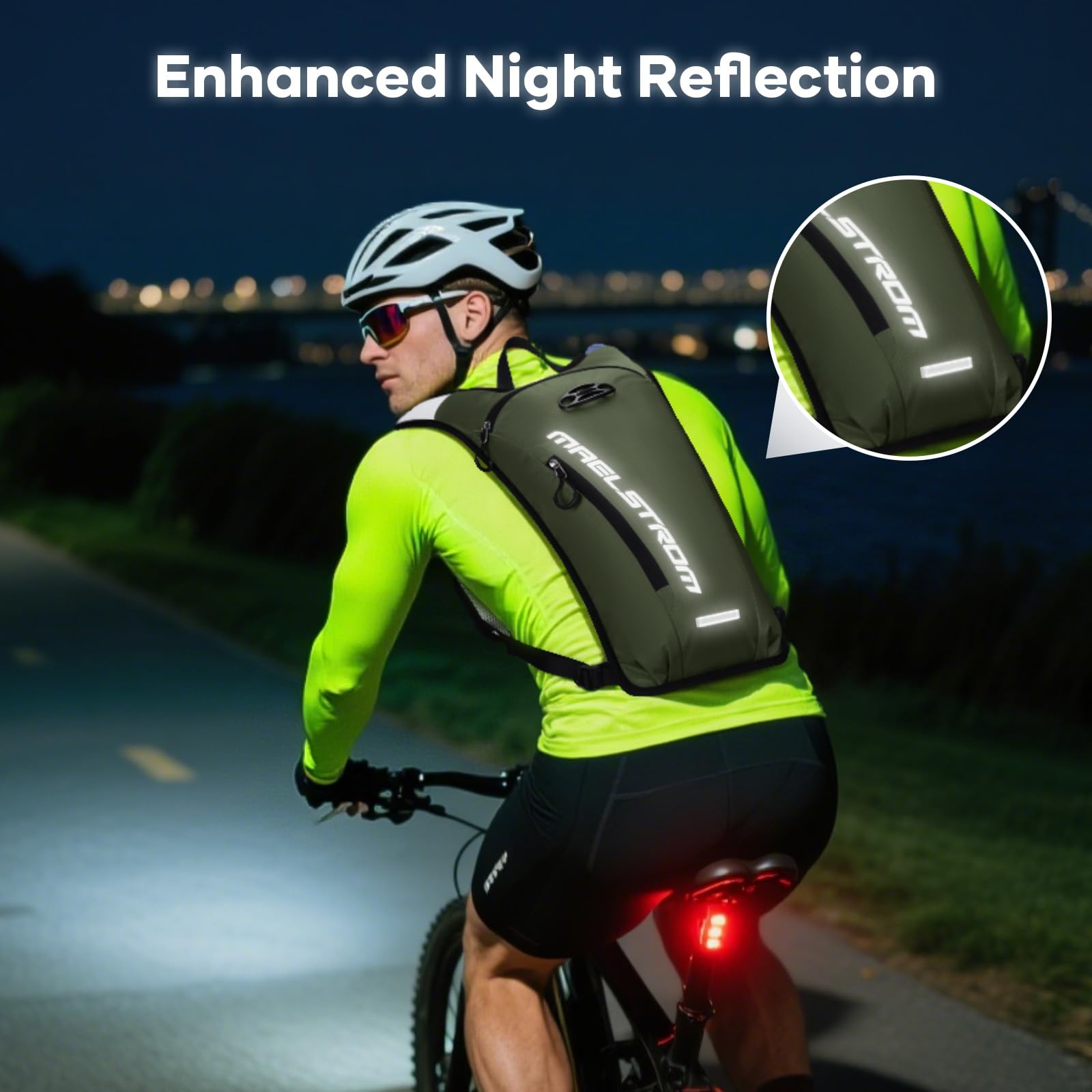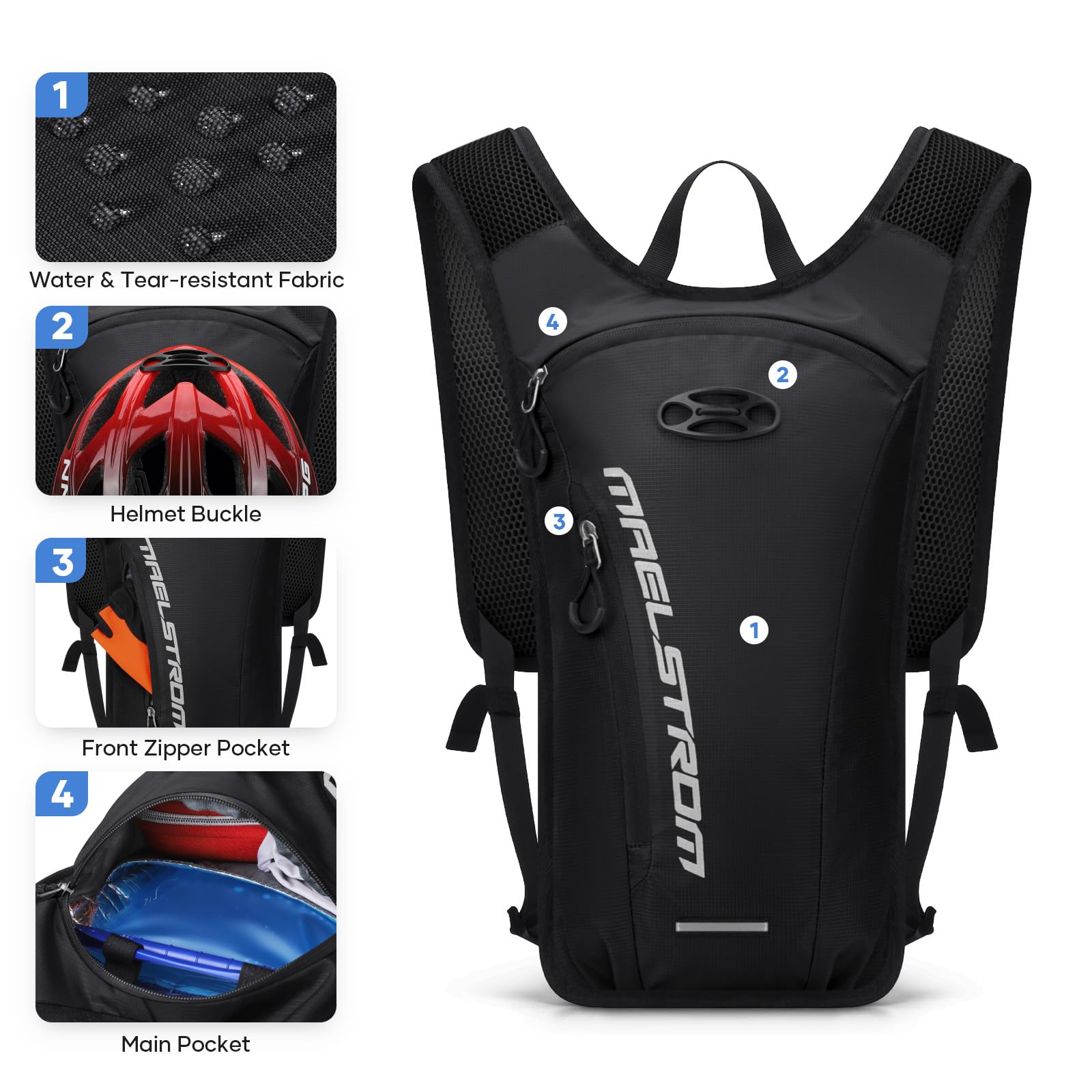 Maelstrom hydration backpack is your go-to for hiking trails, cycling routes, and morning runs. Perfect for storing a 2L water bladder (aluminum-lined for cold retention), it keeps you hydrated on long treks. The breathable back panel prevents sweat buildup, making it ideal for mountain hikes or urban jogs—your versatile water backpack for every adventure.