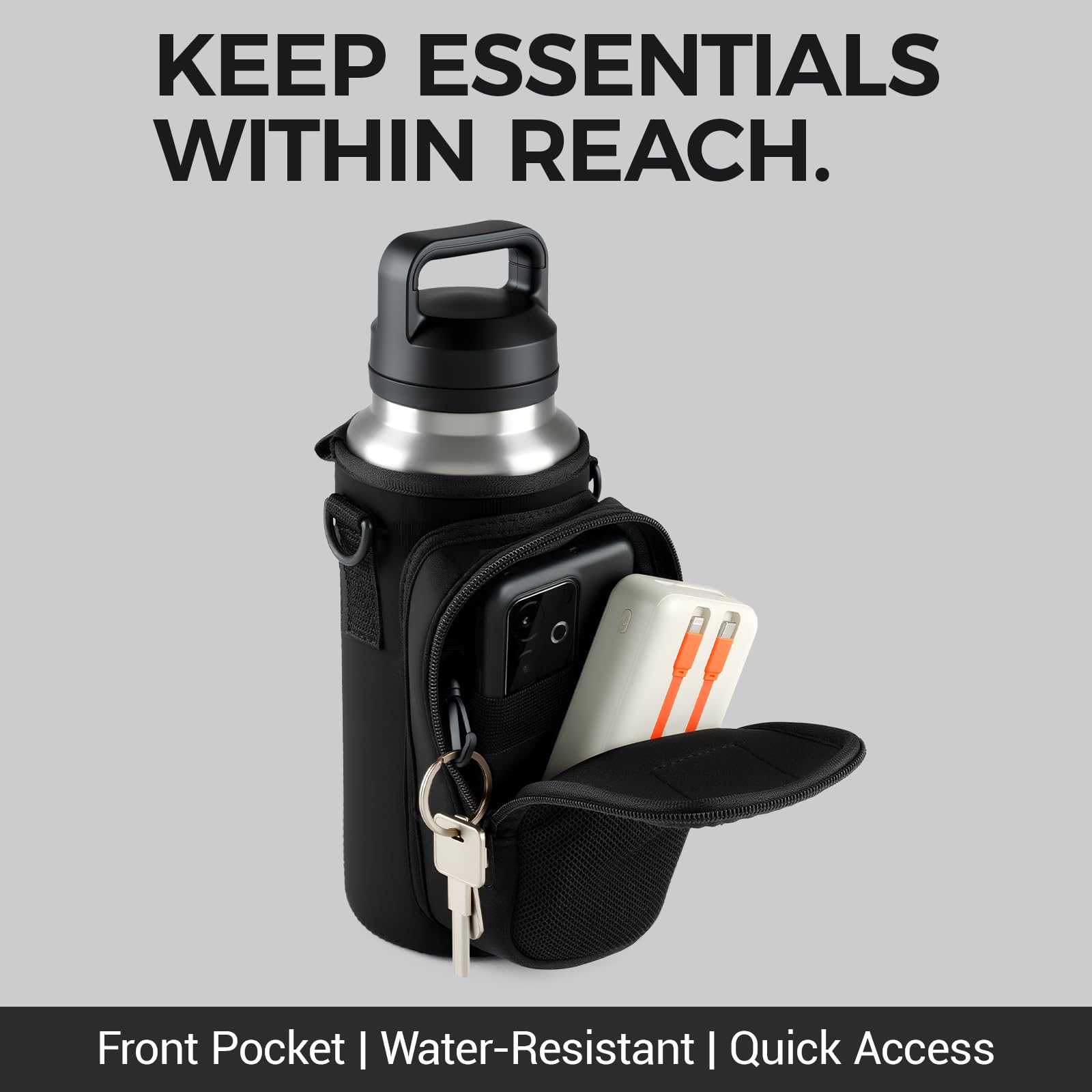 Magnetic Water Bottle Holder Bag with Phone Pocket for 24 32 40 oz, 5 Strong Magnets Neoprene Water Bottle Carrier Adjustable Crossbody Strap for Steel Gym Equipment