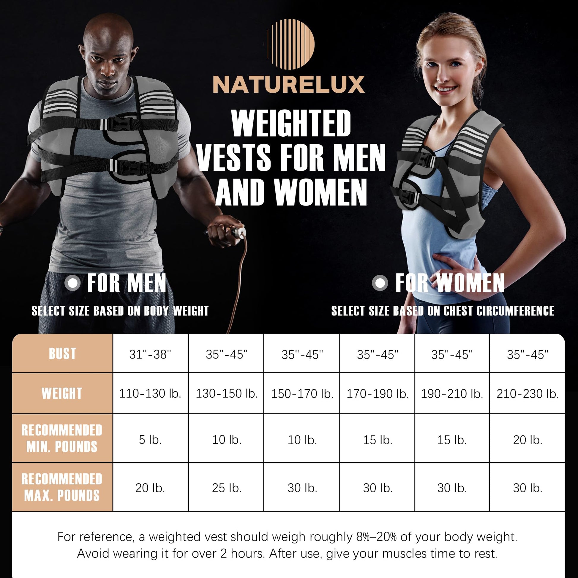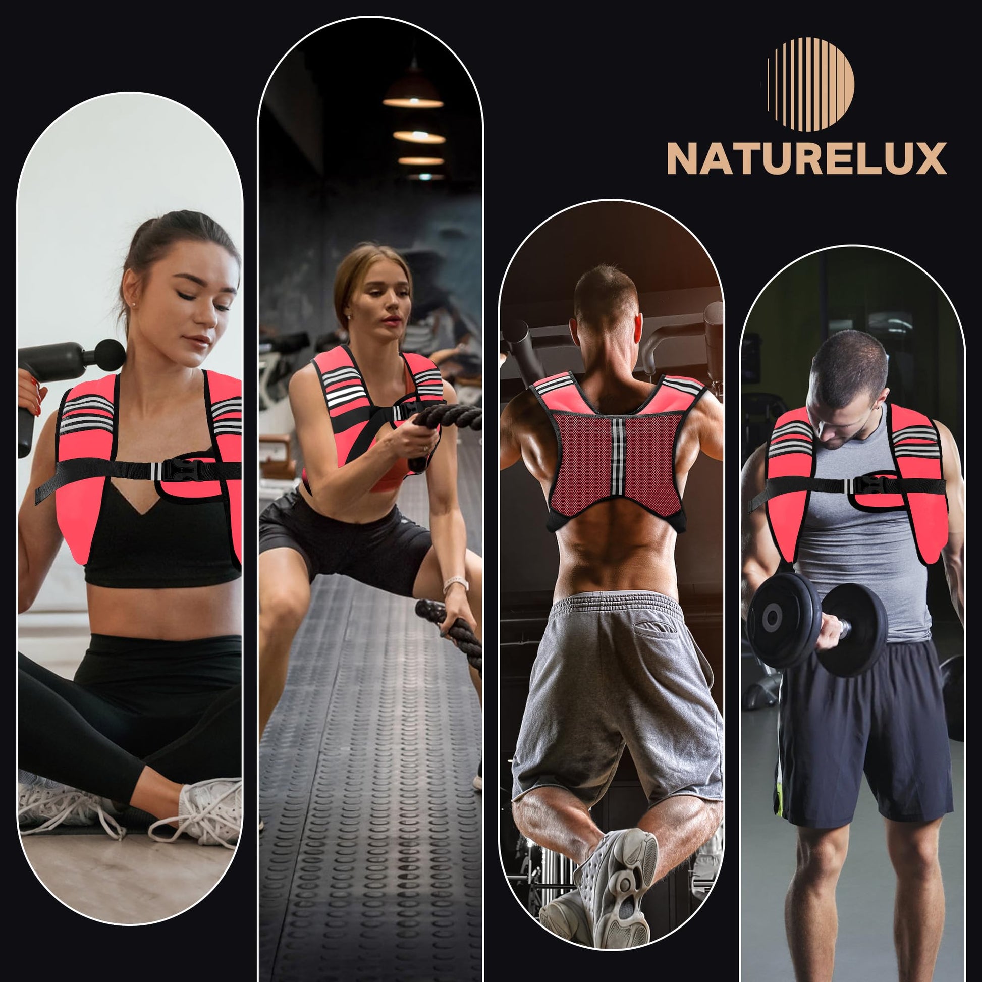 NATURELUX Weighted Vest Men or Women - 5/10/15/20/25/30lbs Weights with Reflective Stripe, Weighted Vest for Workout Equipment for Strength Training Running - Walking Weight Loss